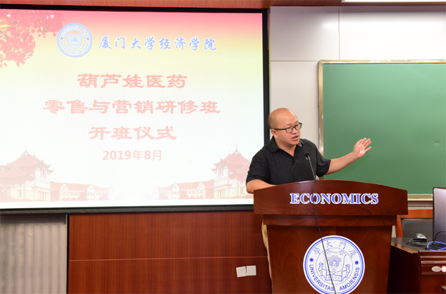 在开班仪式上,廖景峰主任首先代表厦门大学经济学院热烈欢迎EBpay医药零售与营销研修班的学员到厦大学习,并就厦门大学及经济学院的相关情况进行了介绍。他说,EBpay学员走进厦大就是厦大的校友,希望未来的日子能够关心、支持母校的发展,多提宝贵意见,同时他也祝大家在厦大学习期间学有所成、学有所获。